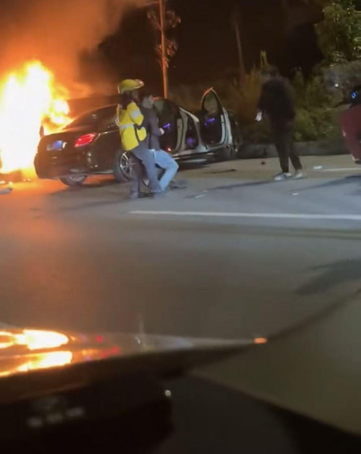 记者随后联系到救人骑手邓亚群,据他介绍,事发时16日凌晨0时40分左右,他在送餐返回途中看到发生车祸,一辆车车头起火,另一辆车是奔驰。赶到时,奔驰车里的人受伤坐在地上,告诉他起火车辆里有人没出来,听到这个情况后,他赶紧上前开展营救,“我打开车门,车里已经有烟了,安全气囊爆开,驾驶员昏迷了。我就赶紧解开安全带,将他拽出了驾驶室,扶到了空地上。”
