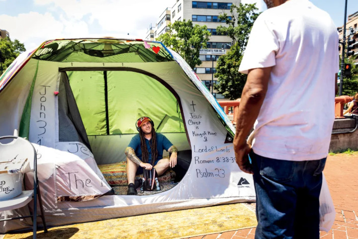 8月11日,美国华盛顿特区,自称无家可归者在街头搭的帐篷。图/视觉中国